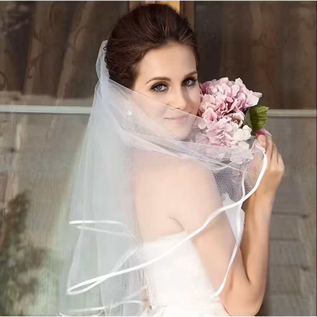 Įspūdingas nuotakos šydas, idealus 2025 metų vestuvėms, pagamintas iš aukštos kokybės plono tiulio, su elegantišku krašto sustiprinimu. Šis baltas šydas sukurtas modernioms nuotakoms, kurios nori rafinuoto ir praktiško aksesuarų.