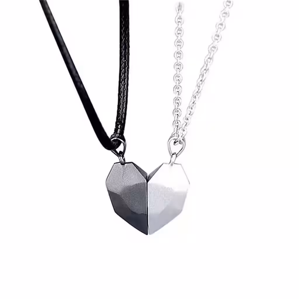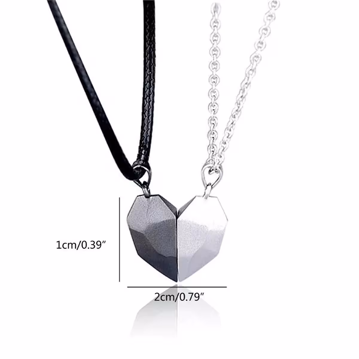 Magnetinių karolių rinkinys porai, draugams, BFF – simbolinė ir moderni dovana, reiškianti meilę, ryšį ir draugystę. Kiekvienas karoliai turi širdies formos pakabutį su magnetu viduje, kuris tobulai susijungia, kai dvi žmonės yra arti vienas kito.