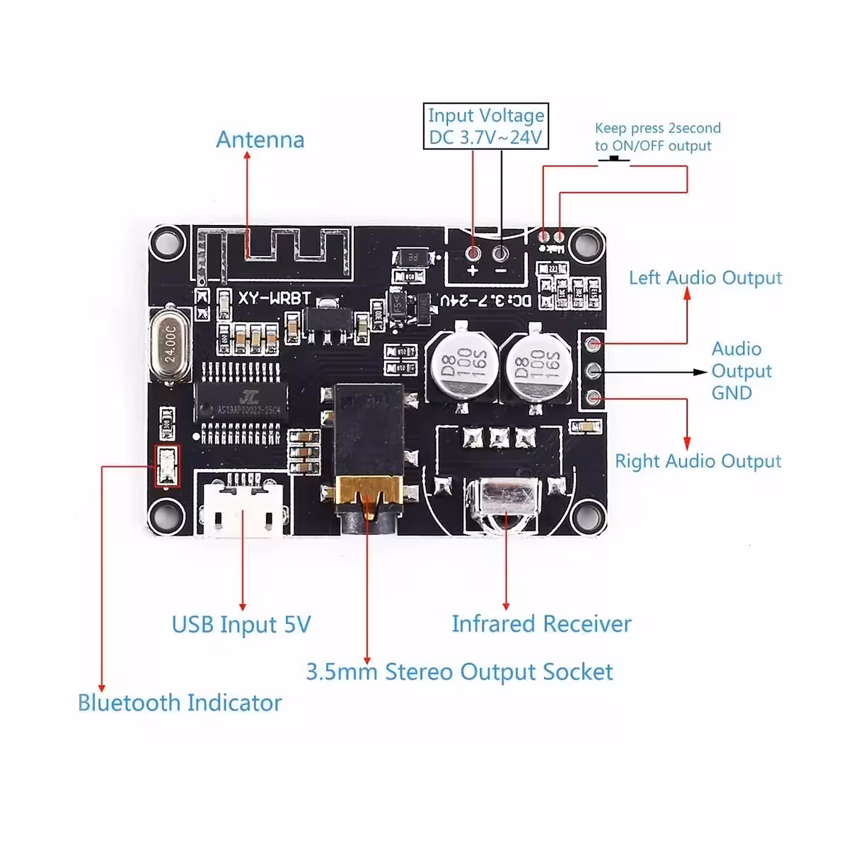 XY-WRBT yra modernus Bluetooth garso dekoderio modulis, aprūpintas nuotolinio valdymo pultu, leidžiančiu pilną valdymą per atstumą. Puikiai tinka DIY projektams, šis garso imtuvas užtikrina stabilų ryšį ir aukštos kokybės stereo atkūrimą.