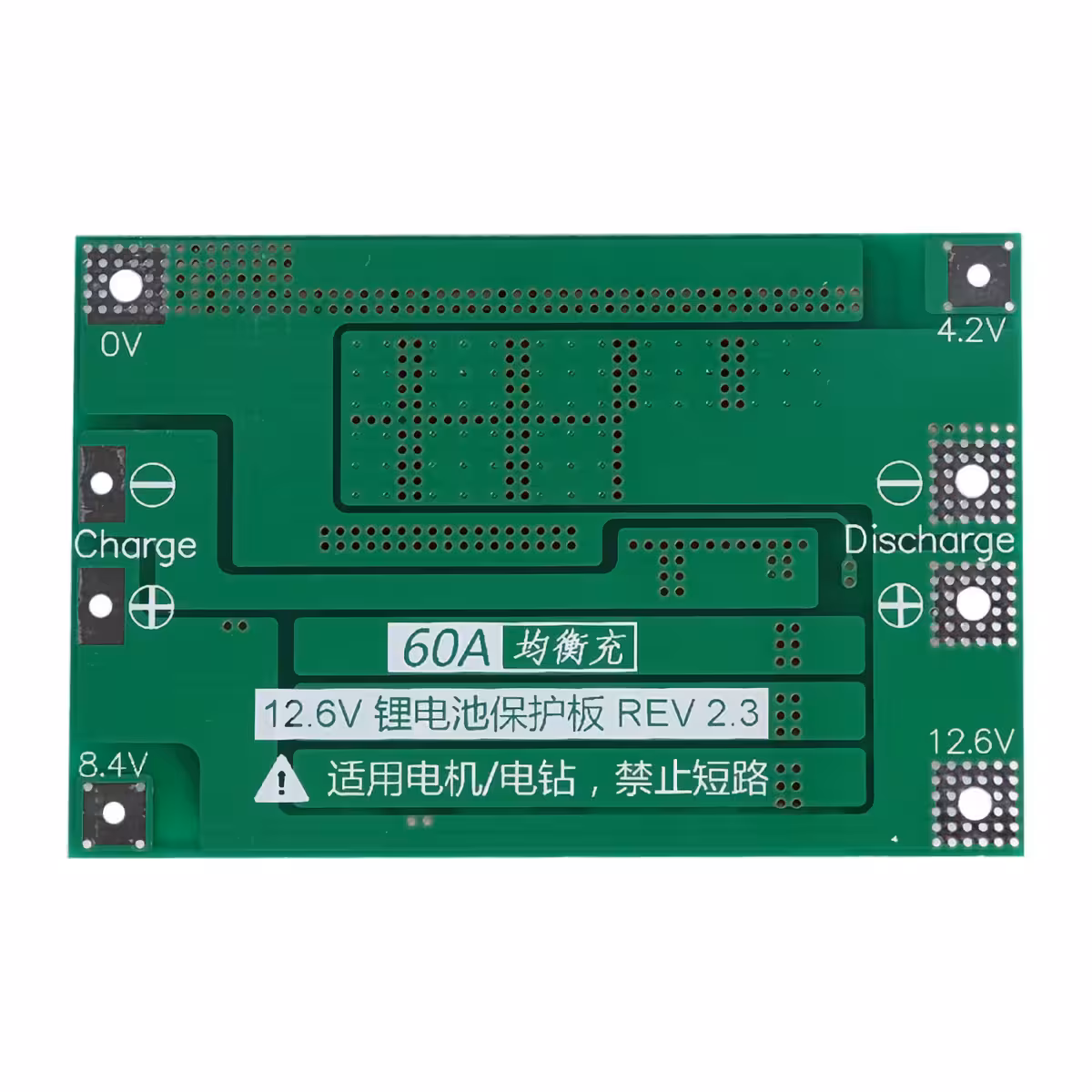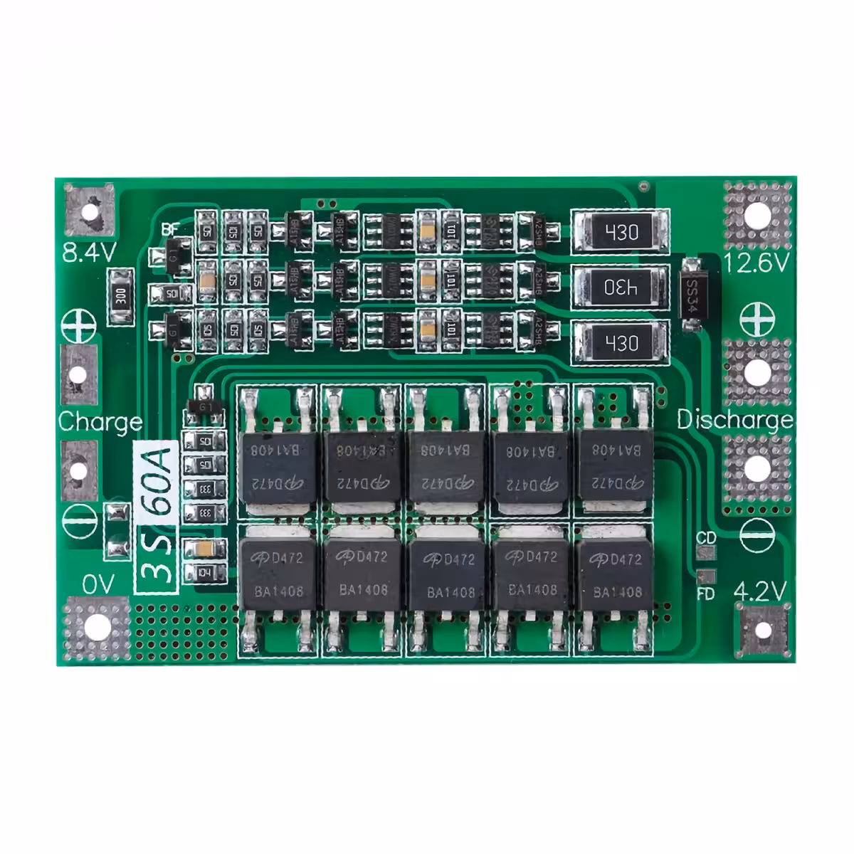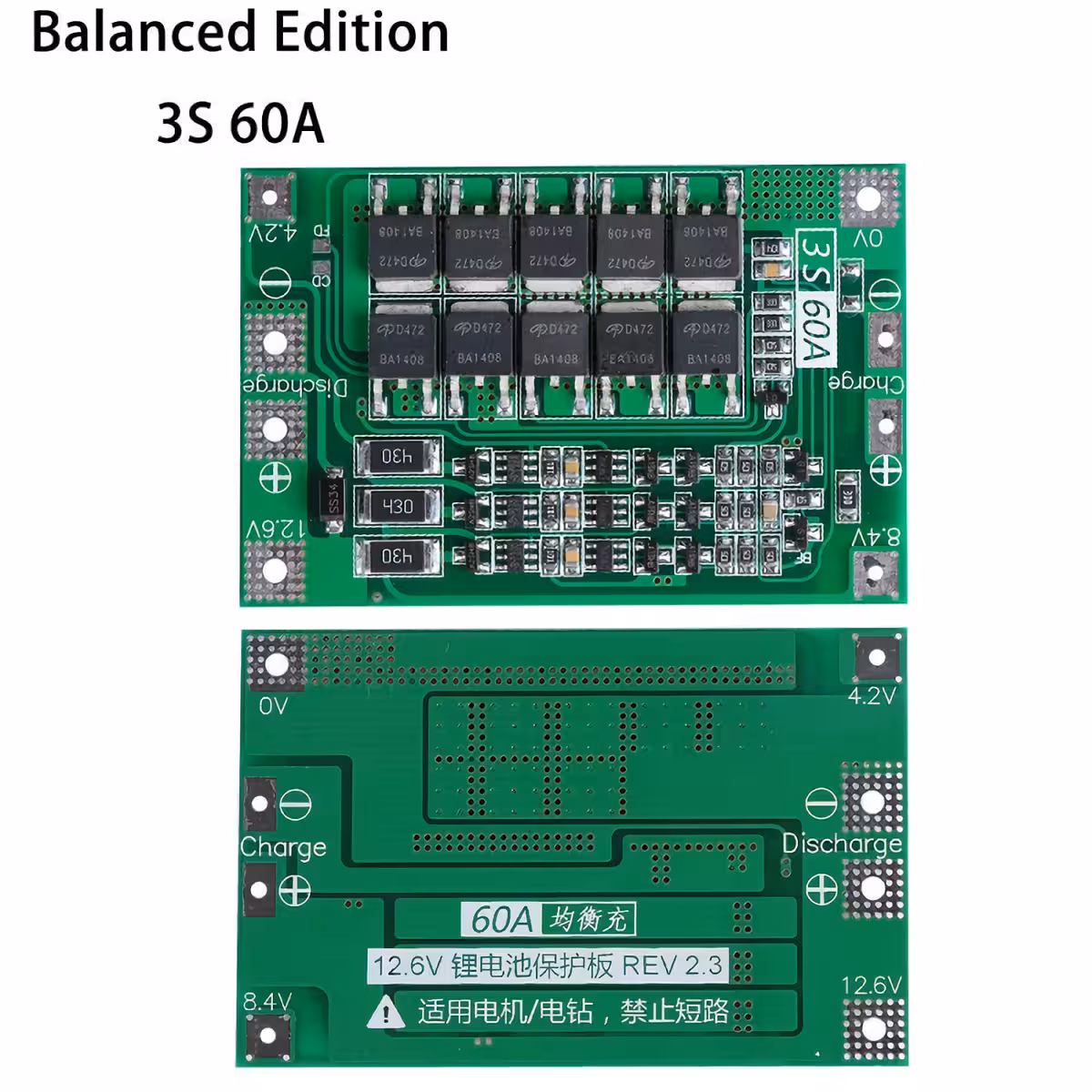BMS 3S 60A modulis suteikia pilną apsaugą 14,8V (3S) Li-Ion 18650 baterijoms, idealus naudojimui su gręžtuvais, elektriniais atsuktuvais, dronais, RC mašinėlėmis, robotais siurbliais ir kitais nešiojamais galingais įrenginiais.