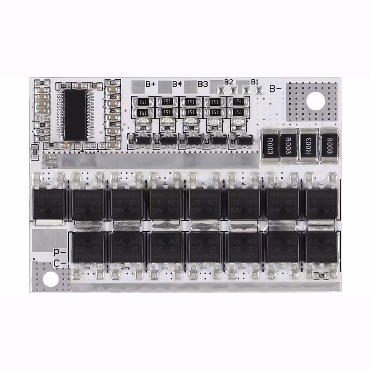 BMS 5S 100A modulis užtikrina visapusišką apsaugą penkioms Li-Ion 18650 celėms, sujungtoms nuosekliai, suteikdamas balansavimą, apsaugą nuo perkrovos, giluminio išsikrovimo, trumpojo jungimo ir viršsrovės.