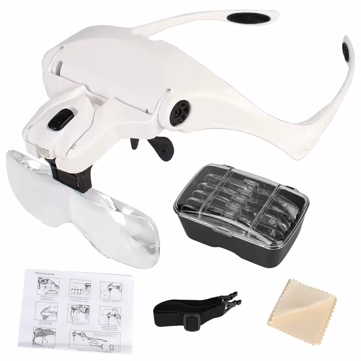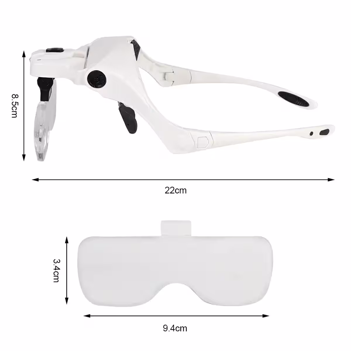 Šie didinantys akiniai yra idealūs laikrodininkams, elektronikos specialistams, juvelyrams, odontologams ar hobių entuziastams, kuriems reikia detalių darbų. Jie turi penkis keičiamus lęšius (1.0X, 1.5X, 2.0X, 2.5X, 3.5X) ir reguliuojamą LED apšvietimą, užtikrinantį aiškią matomumą bet kokiomis sąlygomis.