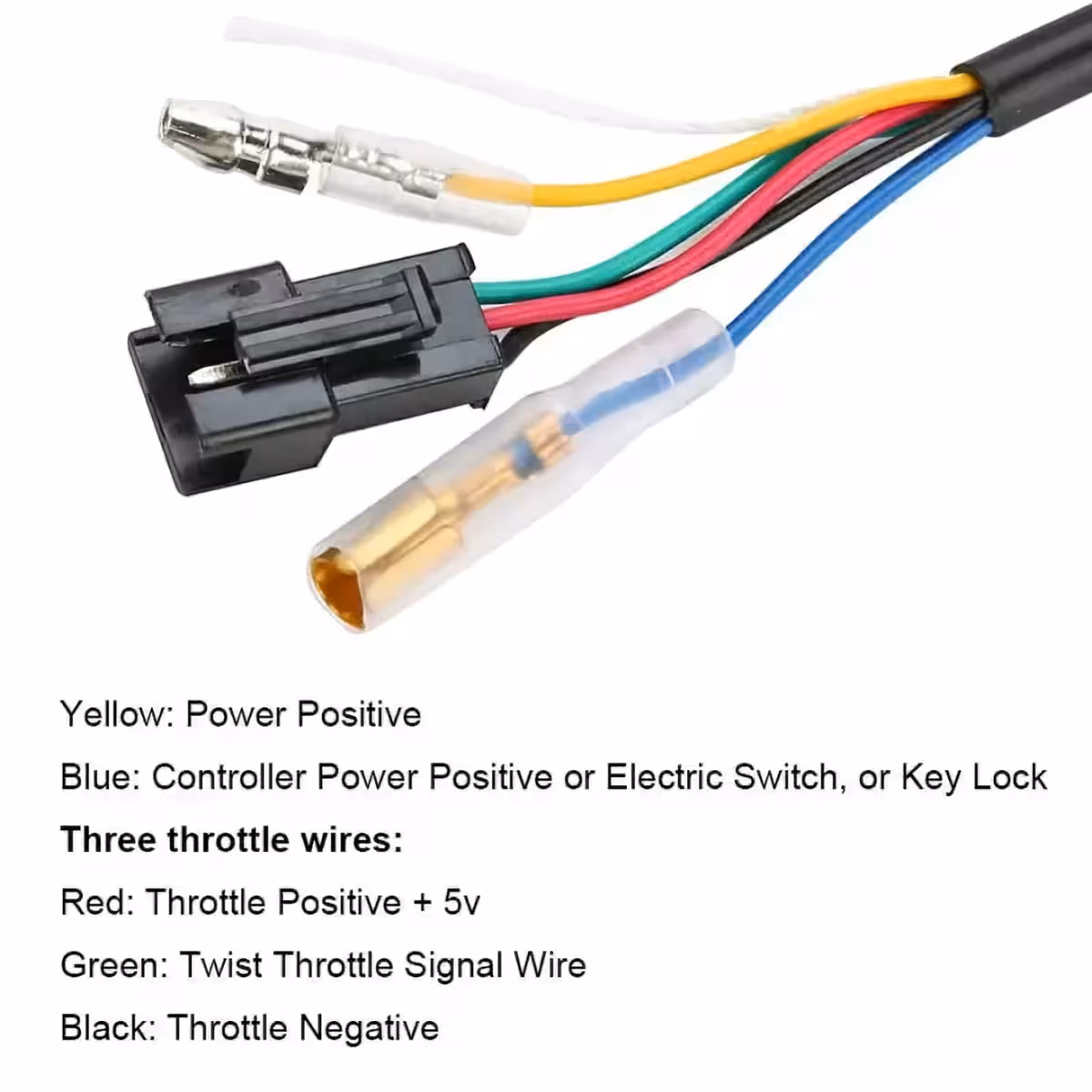 Droselio rankenėlė suderinama su elektriniais dviračiais, elektriniais motoroleriais, elektriniais triračiais, mopedais ir elektriniais ATV, kurių įtampa yra nuo 12V iki 72V.