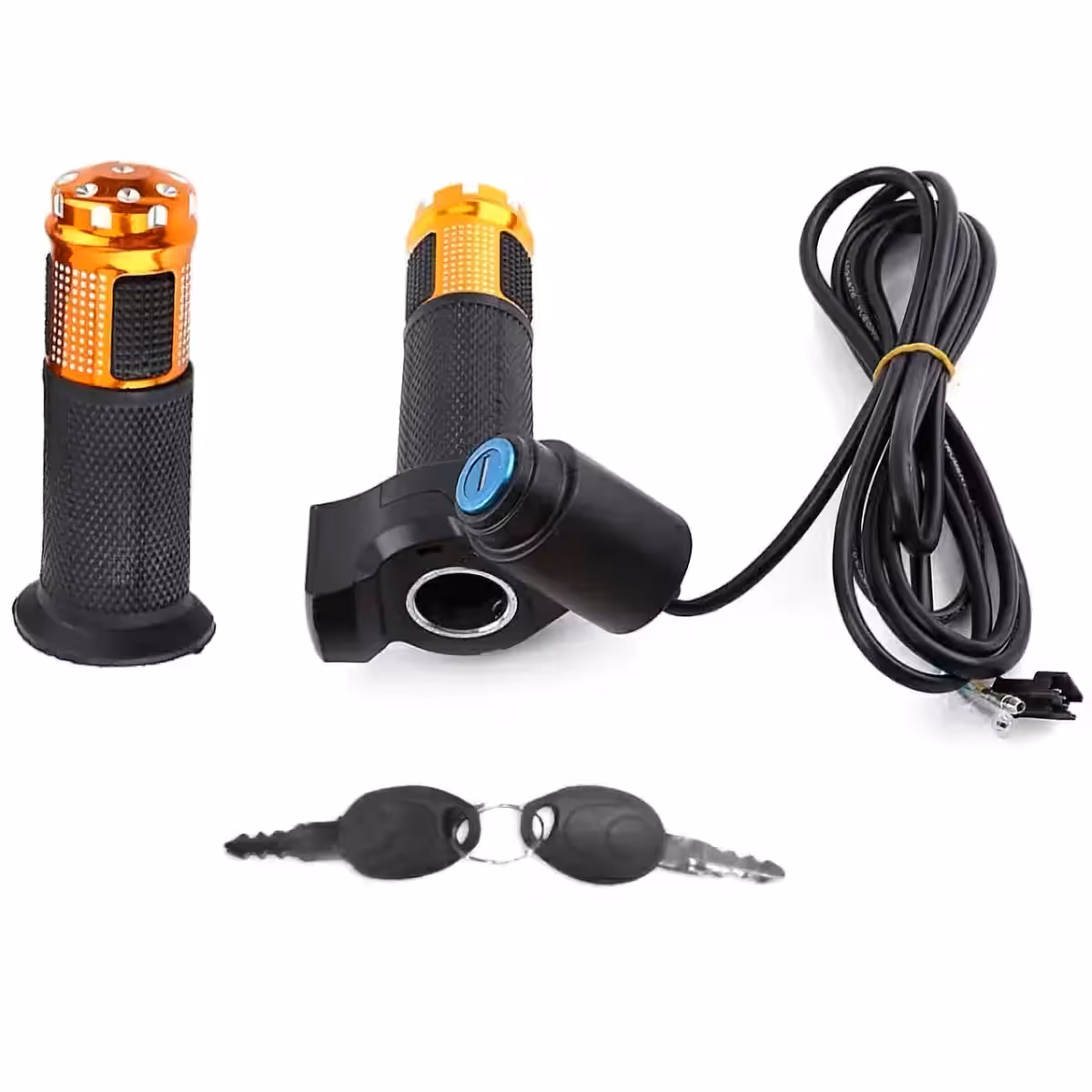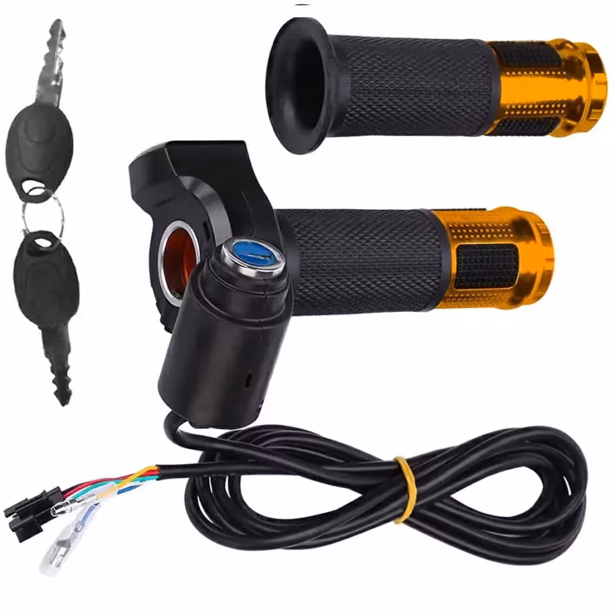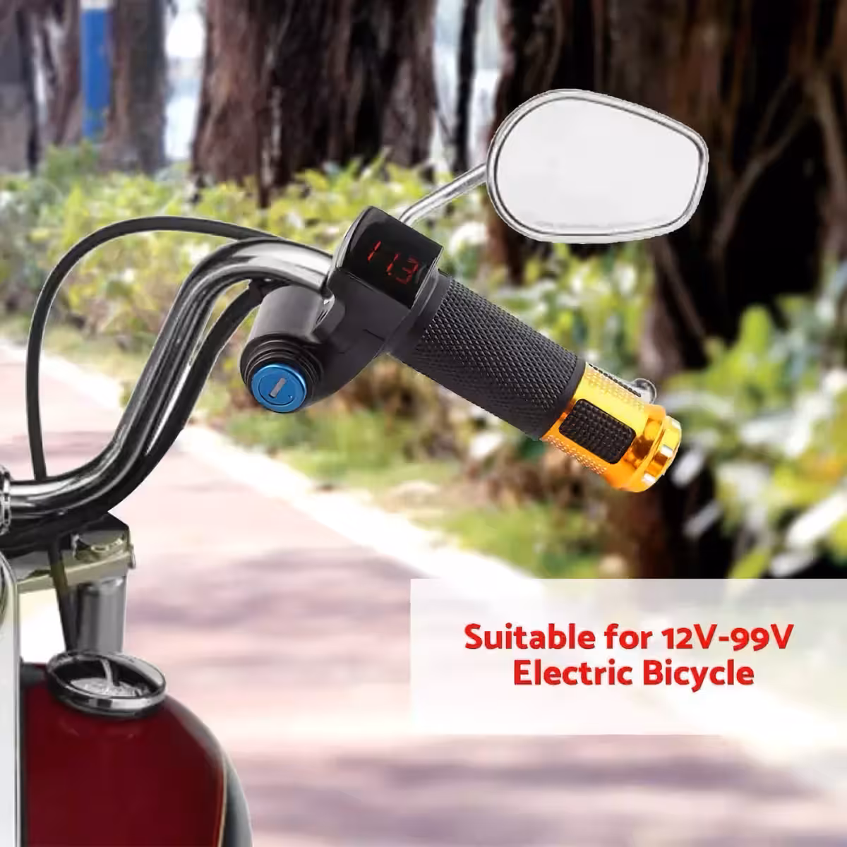 Droselio rankenėlė su kontaktu ir raktu elektriniams dviračiams ir motoroleriams – baterijos įtampos indikatorius 12V–72V