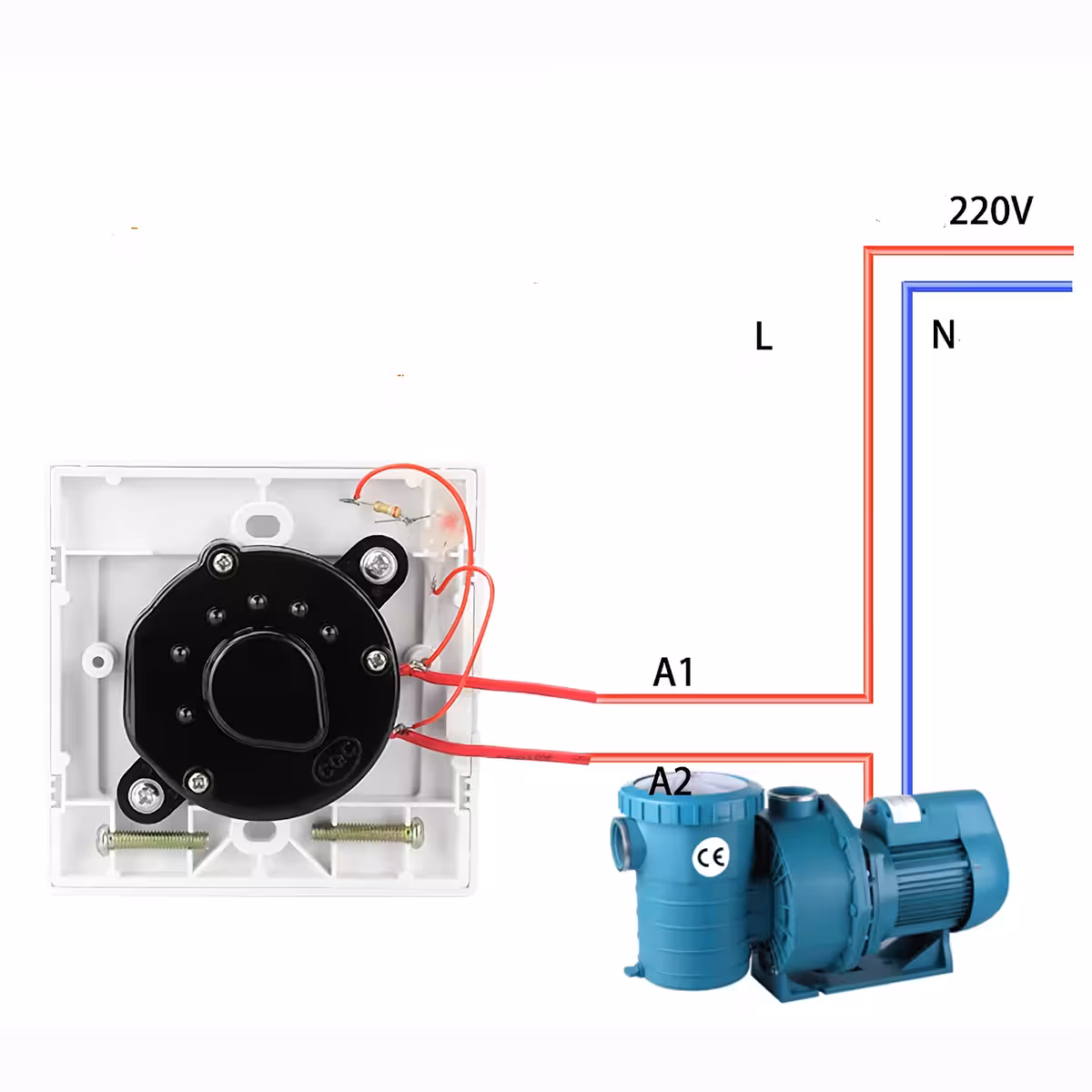 PASTABA: Jei jungiklis bus naudojamas su įrenginiais, kurių galia viršija 2200 W, saugumui reikalingas papildomas relė arba kontaktorius.