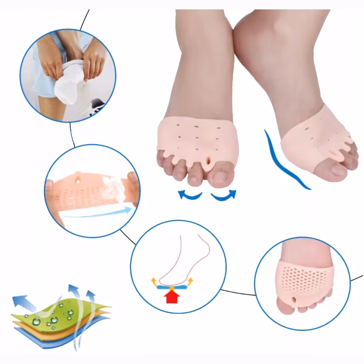 Hallux Valgus pirštų korektorius – silikoninė apsauga kauliukams dienai ir nakčiai