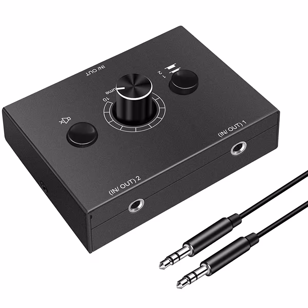 2×1 / 1×2 dvipusis audio jungiklis yra ideali priemonė greitam garso signalo valdymui tarp dviejų šaltinių arba dviejų išėjimų. Šis Audio perjungiklis suderinamas su ausinėmis, aktyviais garsiakalbiais ir audio sistemomis, suteikiant greitą perjungimą tarp šaltinių. Veikia kaip garsiakalbių perjungiklis, audio signalo perjungiklis ir audio šaltinių perjungiklis, su RCA ir 3,5 mm lizdo splitteriu užtikrinant aiškų signalą be kokybės nuostolių.