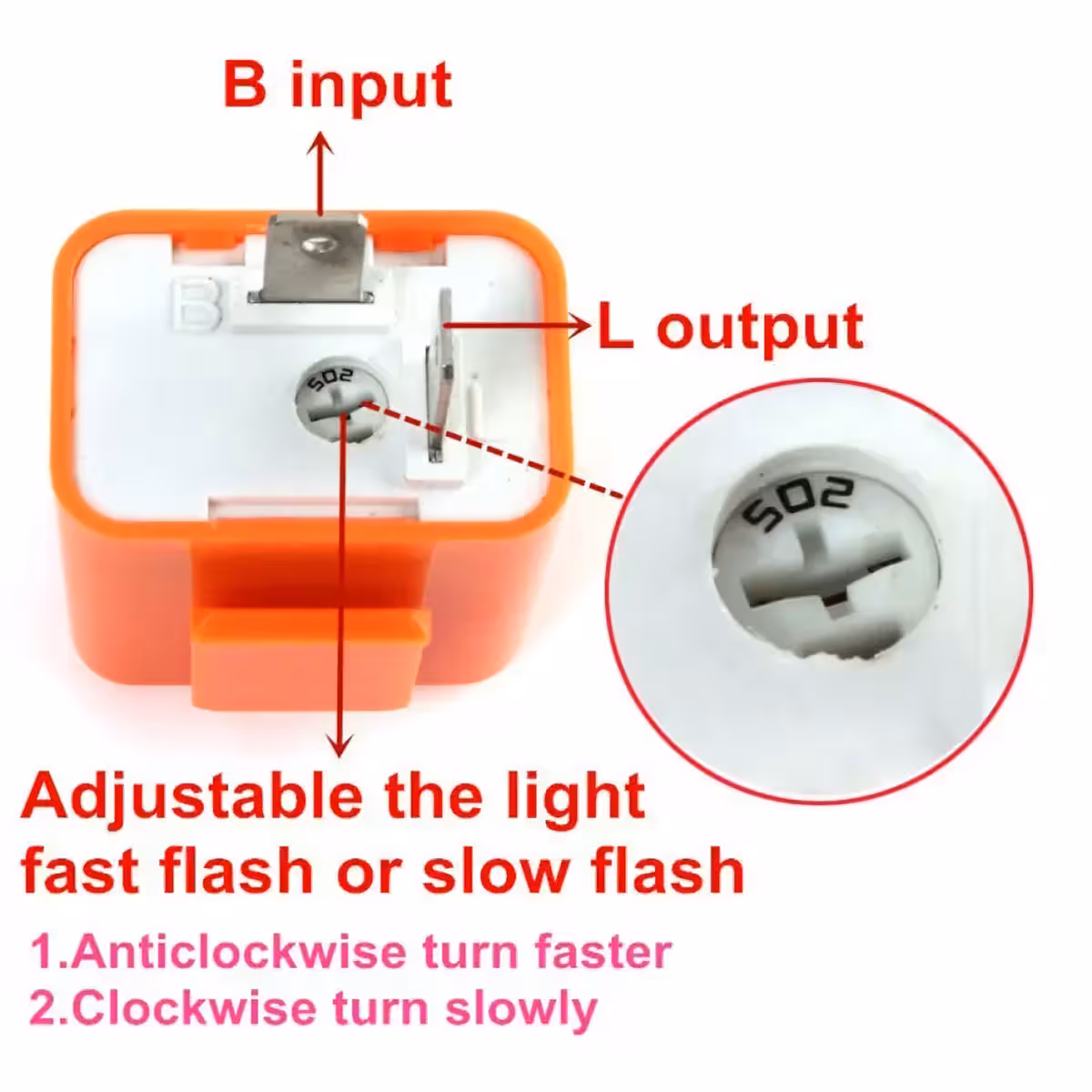 Elektroninė posūkio relė, suderinama su LED ir klasikiniu kaitrinėmis lemputėmis, 2 kontaktų, 12V, reguliuojama.