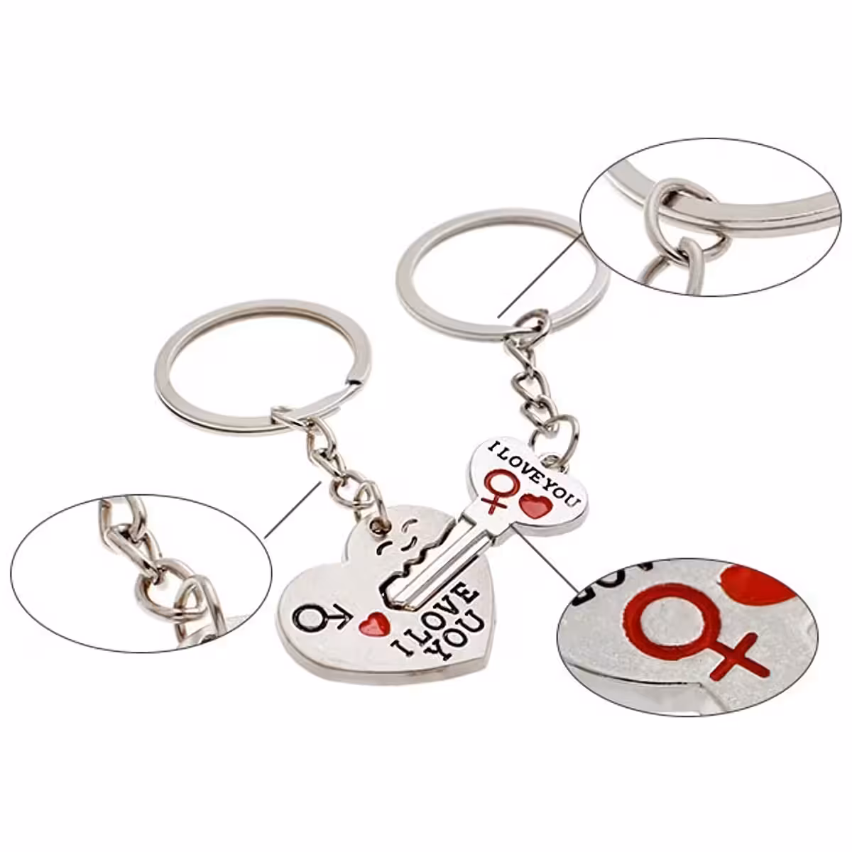 Šiame rinkinyje yra širdis ir mažas raktelis, kurie idealiai dera tarpusavyje, atspindėdami unikalų jūsų ryšį. Puikiai tinka kaip romantiška ar draugiška dovana. Raktų pakabukai pagaminti iš patvaraus cinko lydinio, su kokybišku apdaila, atsparūs laikui.