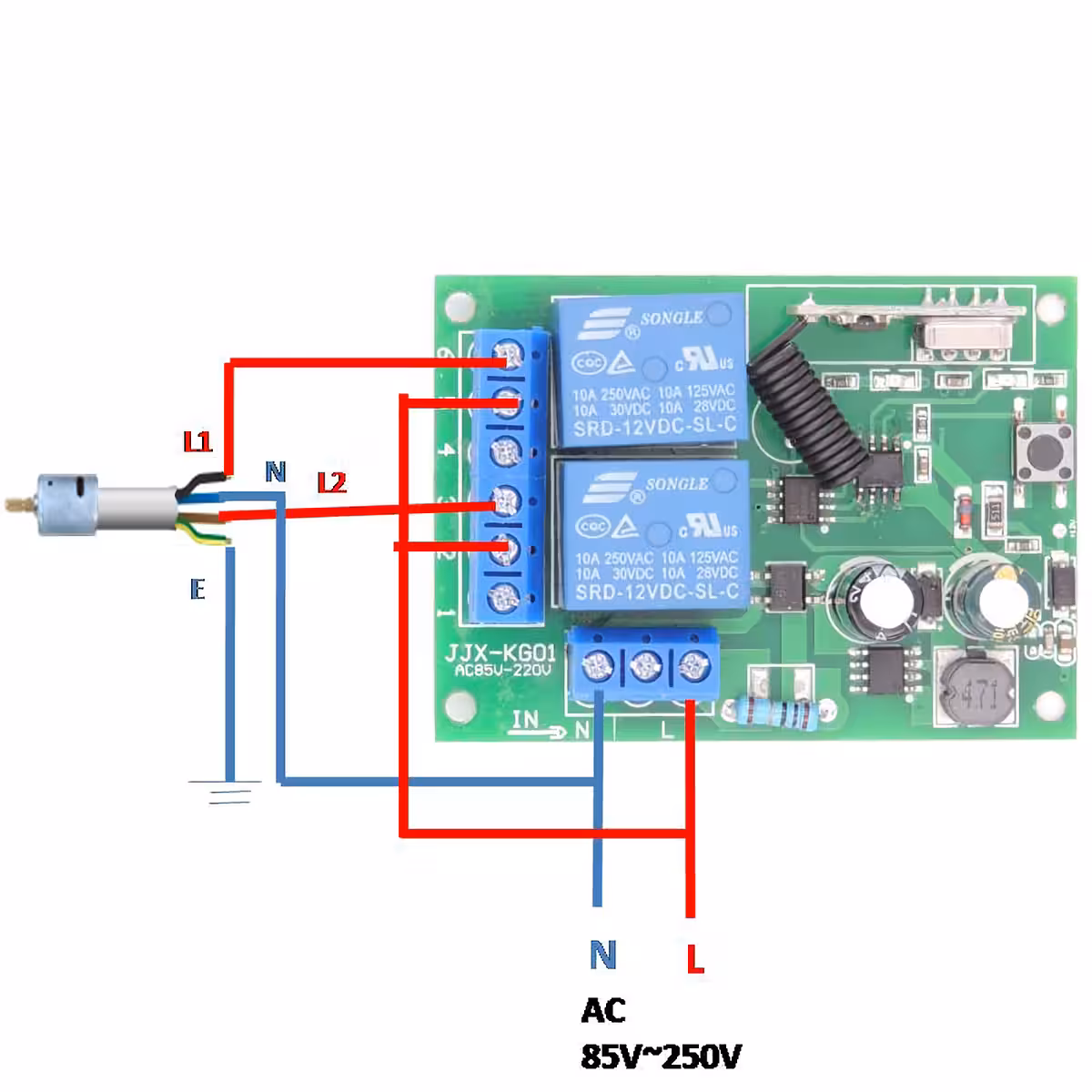 220V Bevielis Releas su Nuotolinio Valdymo pultu – 2 Kanalų 433MHz Radijo Modulis Automatizavimui