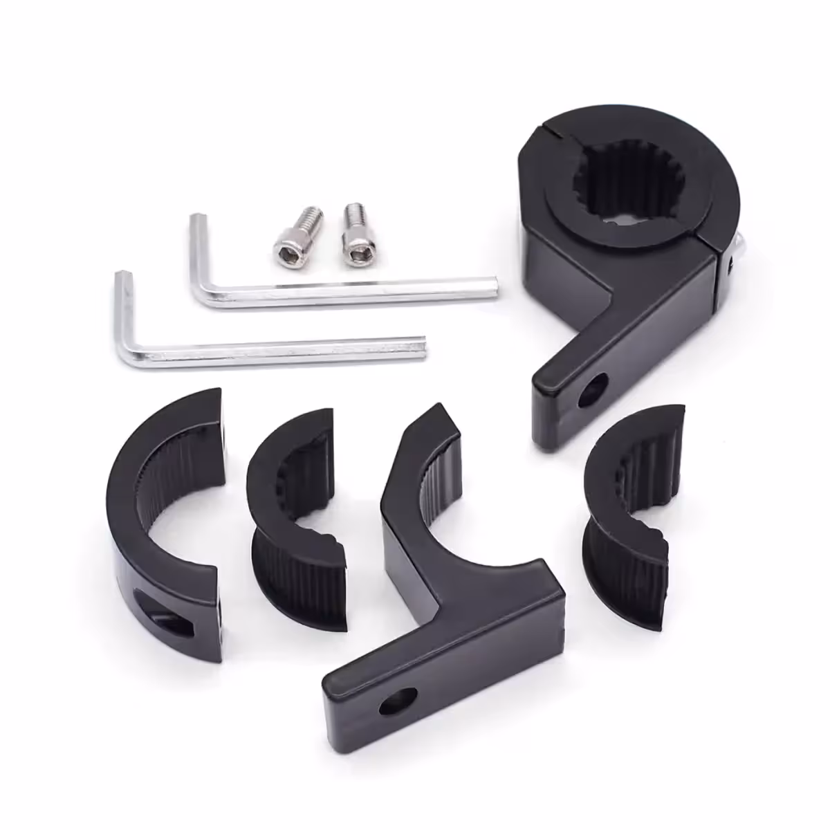 - ✅ Suderinamas su diametrais nuo 22 mm iki 32 mm – universalus vairo ar apsauginių strypų laikiklis
