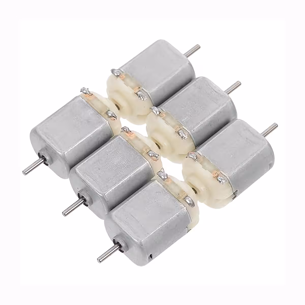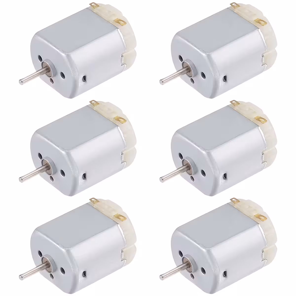 Rinkinį sudaro 6 Mini DC 130 varikliai, puikiai tinkantys edukaciniams projektams, robotams, ventiliatoriams ir paprastiems mechanizmams. Veikia esant 3–6 V DC įtampai, užtikrina didelį sukimosi greitį ir kompaktiškus matmenis. Ø2 mm × 8 mm velenas suderinamas su standartiniais ratais ir krumpliaračiais, skirtais mikro varikliams.
