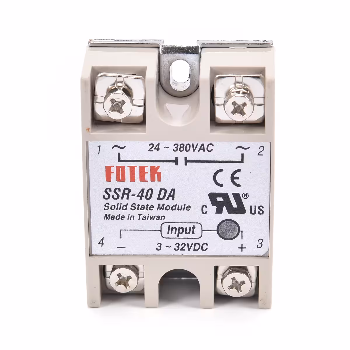 Relė SSR-40A skirta bekontakčiam AC apkrovų 24–380VAC perjungimui, valdoma 3–32V DC signalu, maksimalus srovės stipris 40A, greitas ir be kibirkščių perjungimas. Optinė izoliacija ir TRIAC išėjimas.